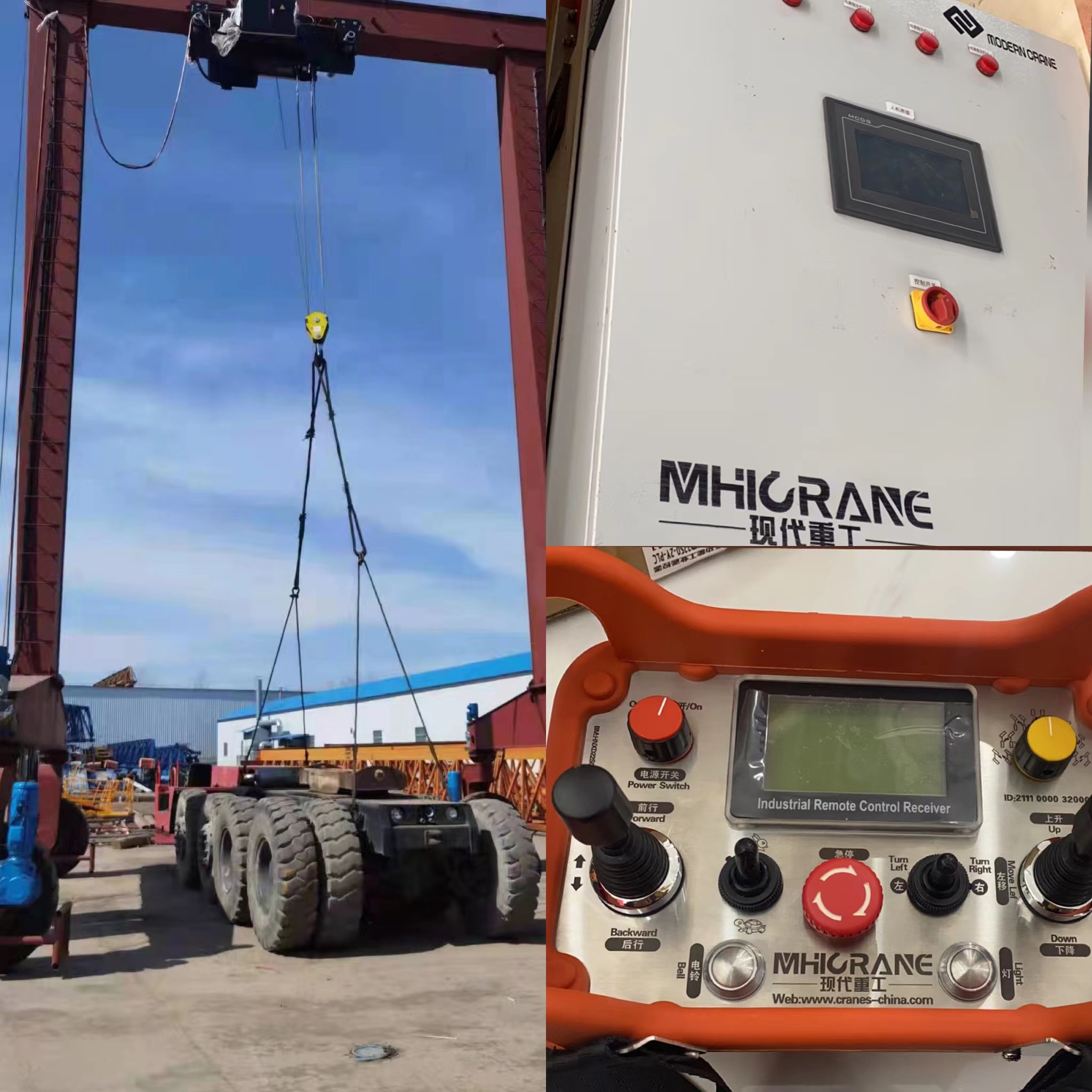 轮胎门式起重机简称轮胎吊,近日在厂内调试完毕,满足客户各项技术指标,直行,斜行,左右转向,原地回转等,即将发往港口。