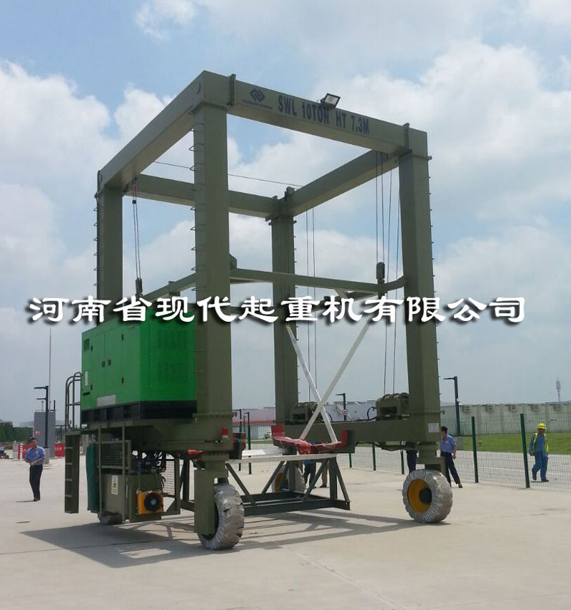河南省现代起重机有限公司于7月20日制造完成了新型全液压全地形轮胎门式起重机(轮胎吊,游艇轮胎吊),该起重机对于地面要求较低,无需铺设轨道,使用方便安全,主要用于港口,码头,货场等场所。